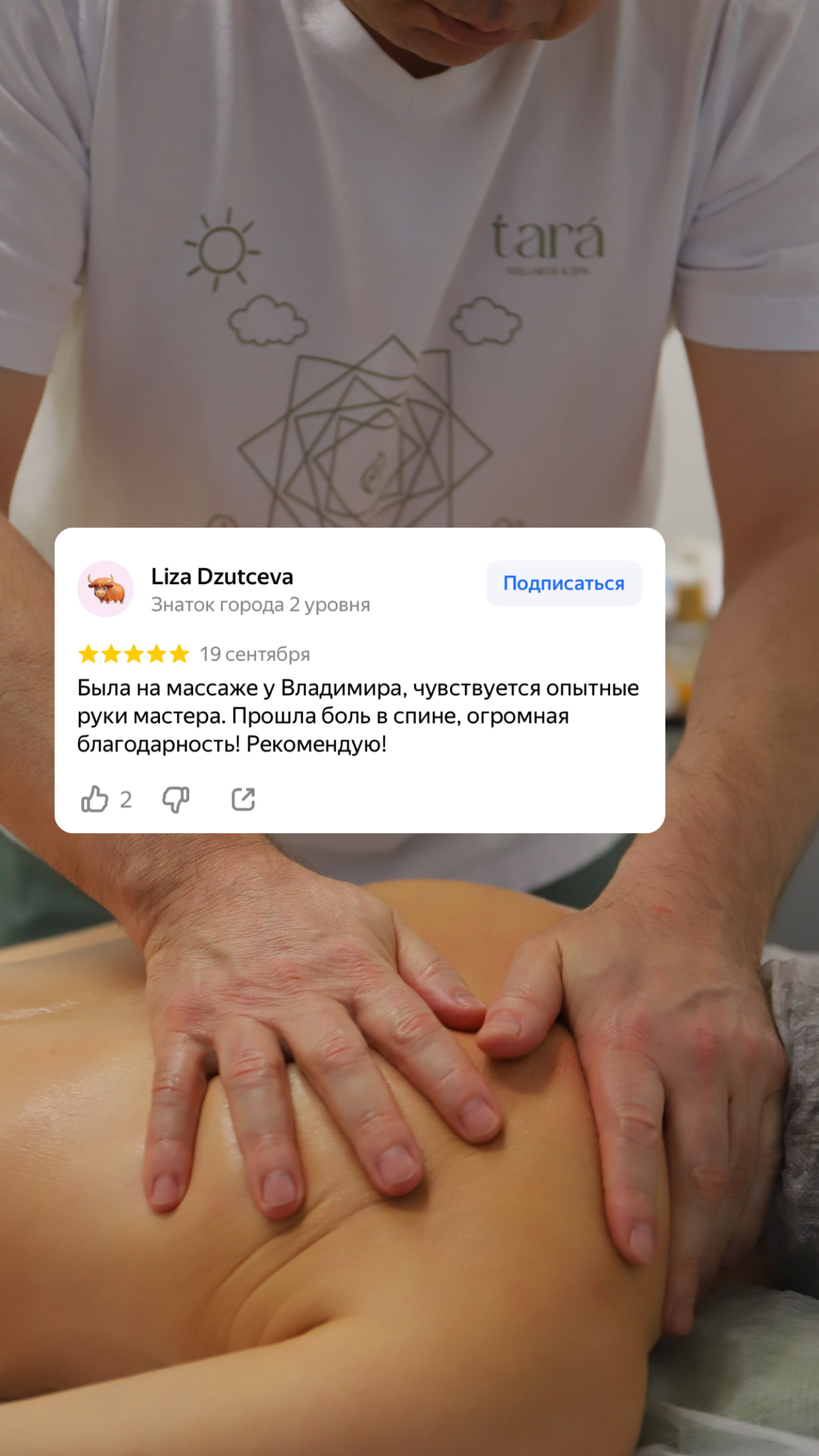 Предложение на первое посещение. Массаж спины снимает напряжение и боль в мышцах, улучшает осанку и кровообращение, восстанавливая легкость движений и общее самочувствие.