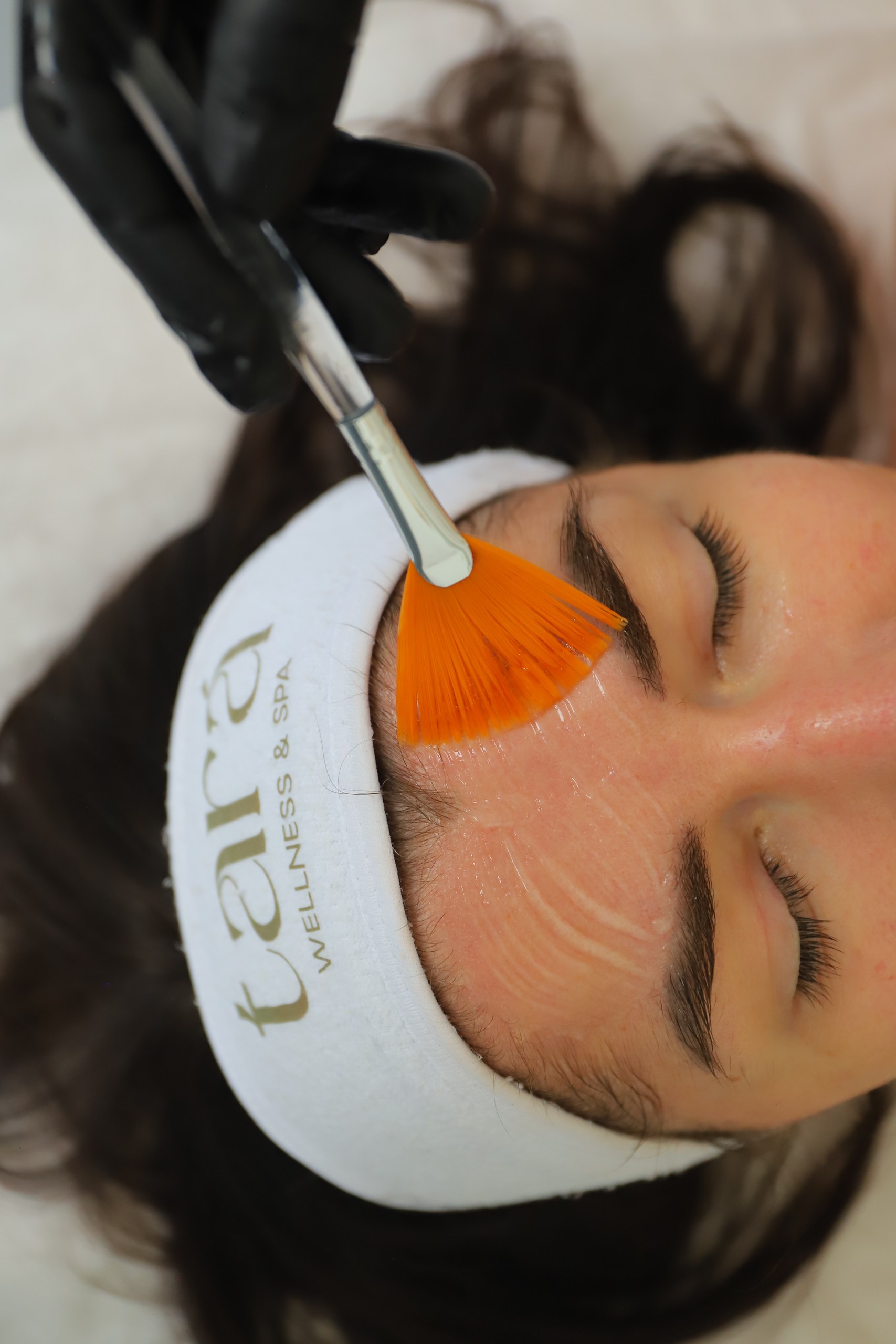 2. Подготовка кожи: Обезжиривание кожи специальным лосьоном для улучшения проникновения гликолевой кислоты.