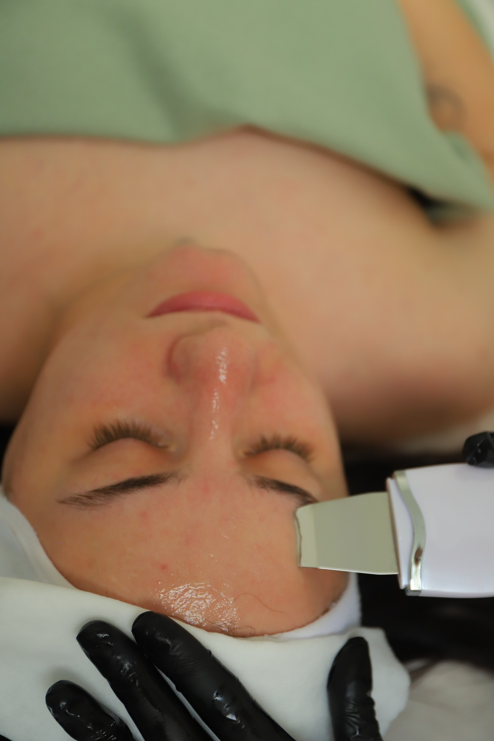 1. Ультразвуковая чистка: На кожу наносится специальный проводниковый гель, после чего косметолог обрабатывает кожу ультразвуковым скрабером. Ультразвуковые волны:
