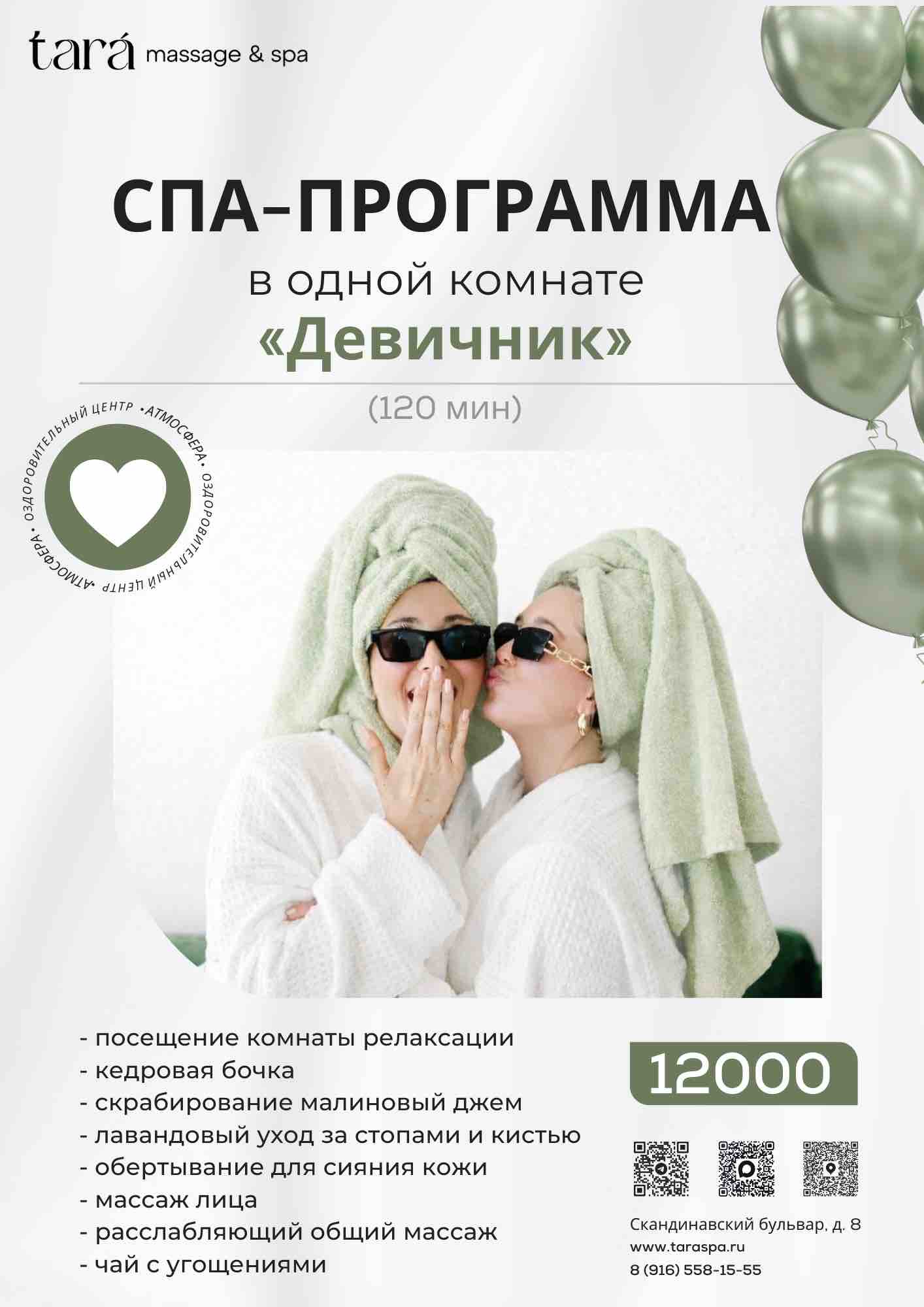 Забудьте о стрессе и заботах! Запишитесь на SPA-программу "Девичник" прямо сейчас и подарите себе незабываемый опыт гармонии и восстановления!