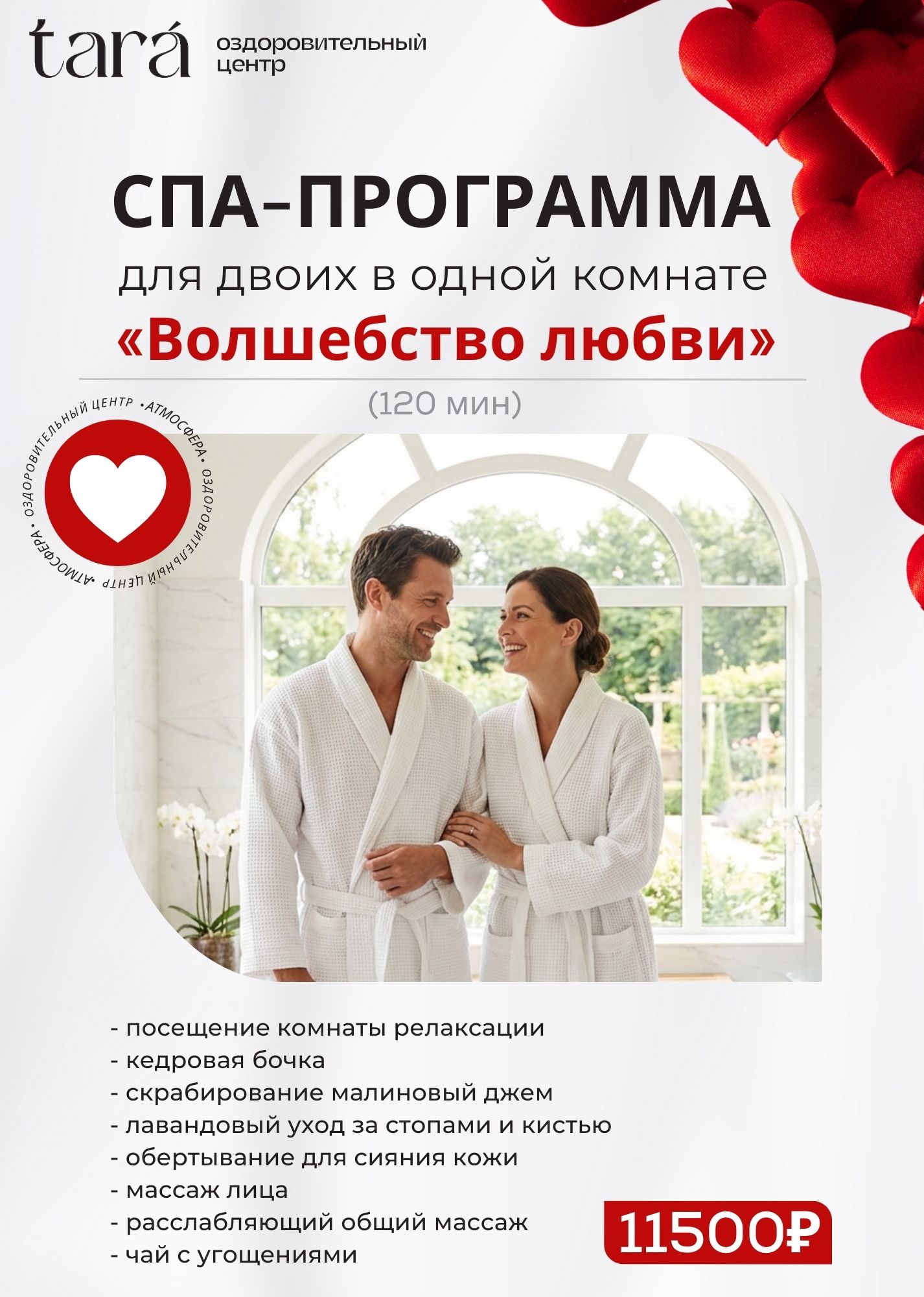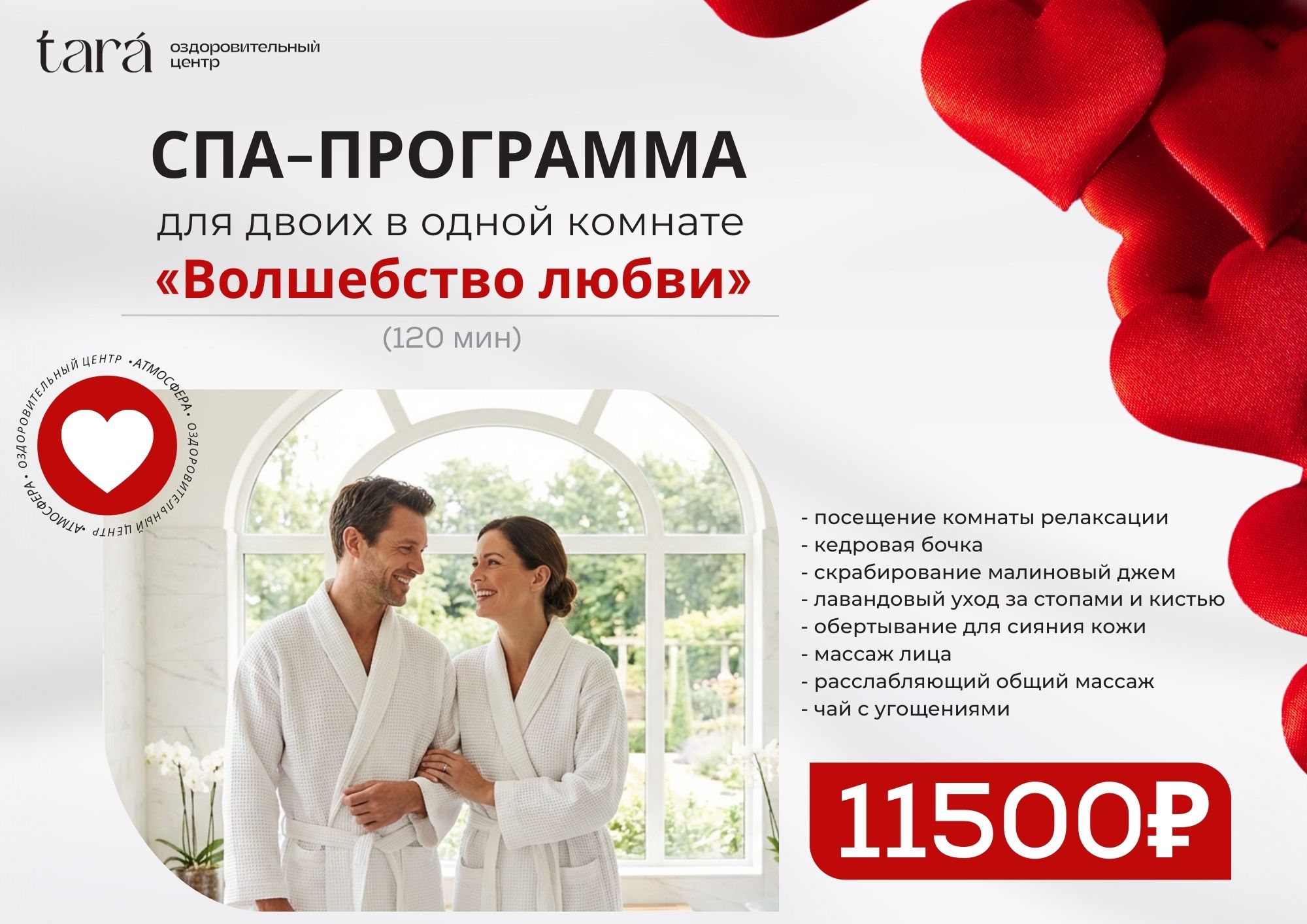 Забудьте о стрессе и заботах! Запишитесь на SPA-программу "Волшебство любви" прямо сейчас и подарите себе незабываемый опыт гармонии и восстановления!