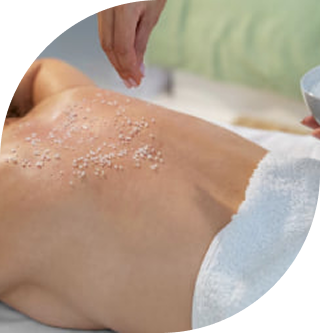 нанесение кокосового скраба массажными движениями, целительные свойства соли, содержащейся в скрабе оказывает не только эффект очищения кожи от ороговевших слоев, но и благоприятно воздействуют на очищение от негатива энергетических каналов и выводу лишней воды из организма...